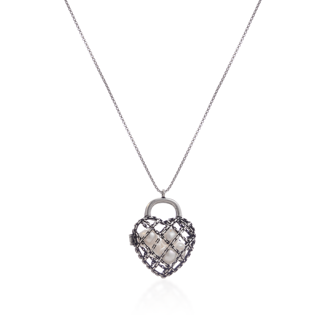 Interlocking Heart Pearl Necklace | 24K Silver-Plated Brass | Eternal Love Symbolism
