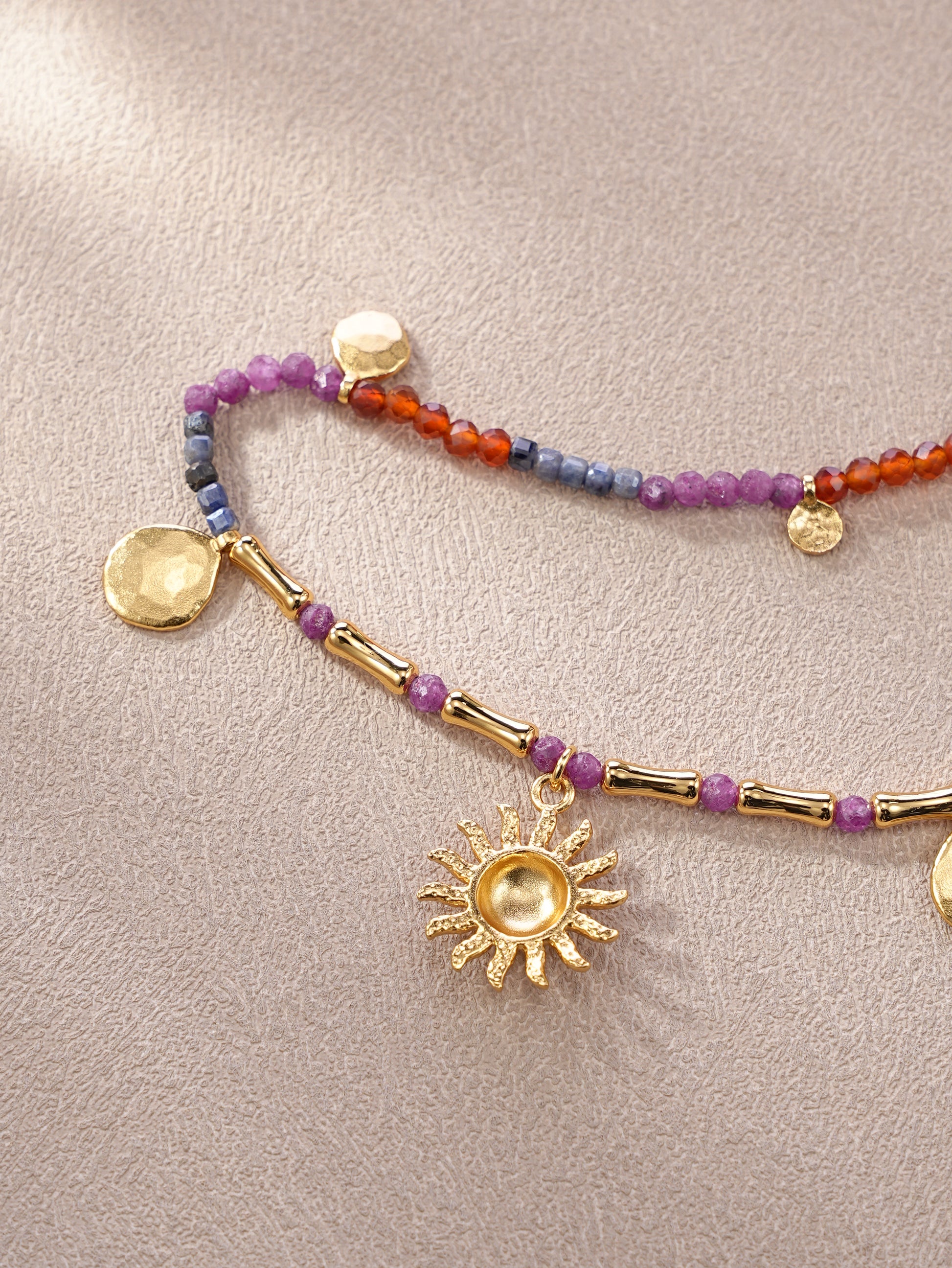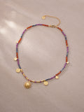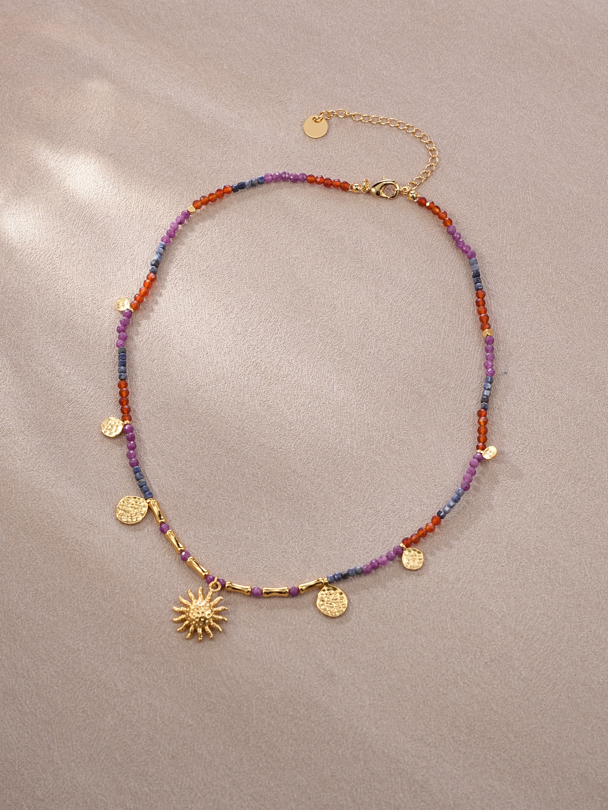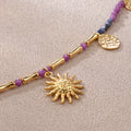 Bohemian Sun Charm Beaded Choker Necklace - Colorful Gemstone Gold Plated Statement Jewelry for Women
