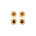 DOZM Double Sunflower Tiger's Eye Earrings | 12mm Gold-Plated Statement Jewelry | 7.9g Bohemian Chic Earrings