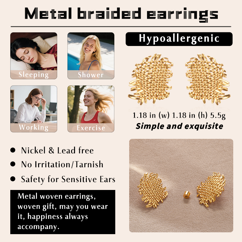 Embrace artisanal elegance with DOZM’s Metal Woven Hoop Earrings, where intricate craftsmanship meets everyday versatility. Handcrafted from 24K gold-plated brass and featuring hypoallergenic S925 sterling silver posts, these geometrically woven hoops blend bohemian charm with modern minimalism. Measuring 1.18 inches (3cm) in both width and height, these lightweight earrings (5.5g) are designed for all-day comfort, making them perfect for work, exercise, showers, or even sleeping.