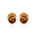 Engraved Tiger's Eye Earrings | 24K Gold Plated Brass | Mysterious Gemstone Jewelry for Women (0.78 inch, 9.5g)