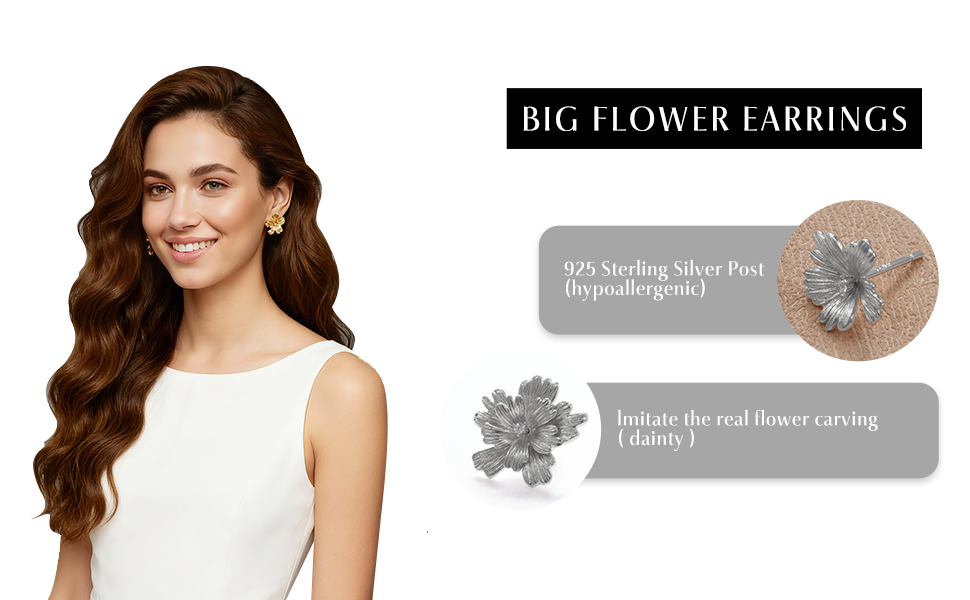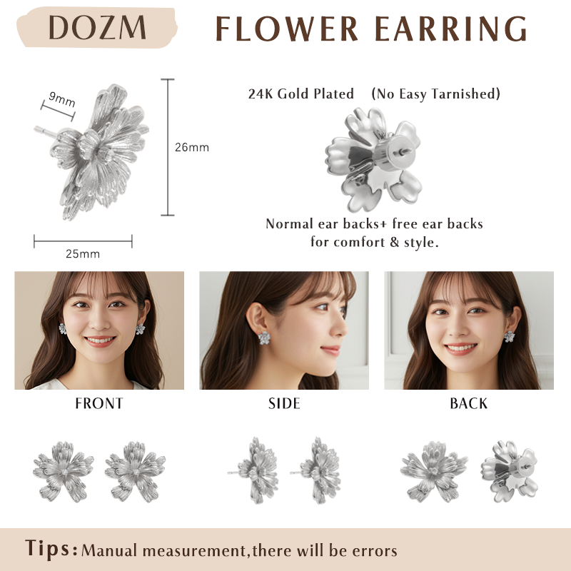 Bloom with timeless elegance in DOZM’s Floral Statement Earrings, where nature’s delicate beauty meets luxurious craftsmanship. These intricately sculpted earrings feature a lifelike flower motif, meticulously carved and finished in radiant 24K gold plating over high-quality brass. Designed with comfort and versatility in mind, each piece is backed with hypoallergenic 925 sterling silver posts, ensuring all-day wear without irritation. At 2.6cm x 2.5cm and a lightweight 4.3g, these earrings make a graceful statement—perfect for elevating everyday outfits or celebrating special moments.