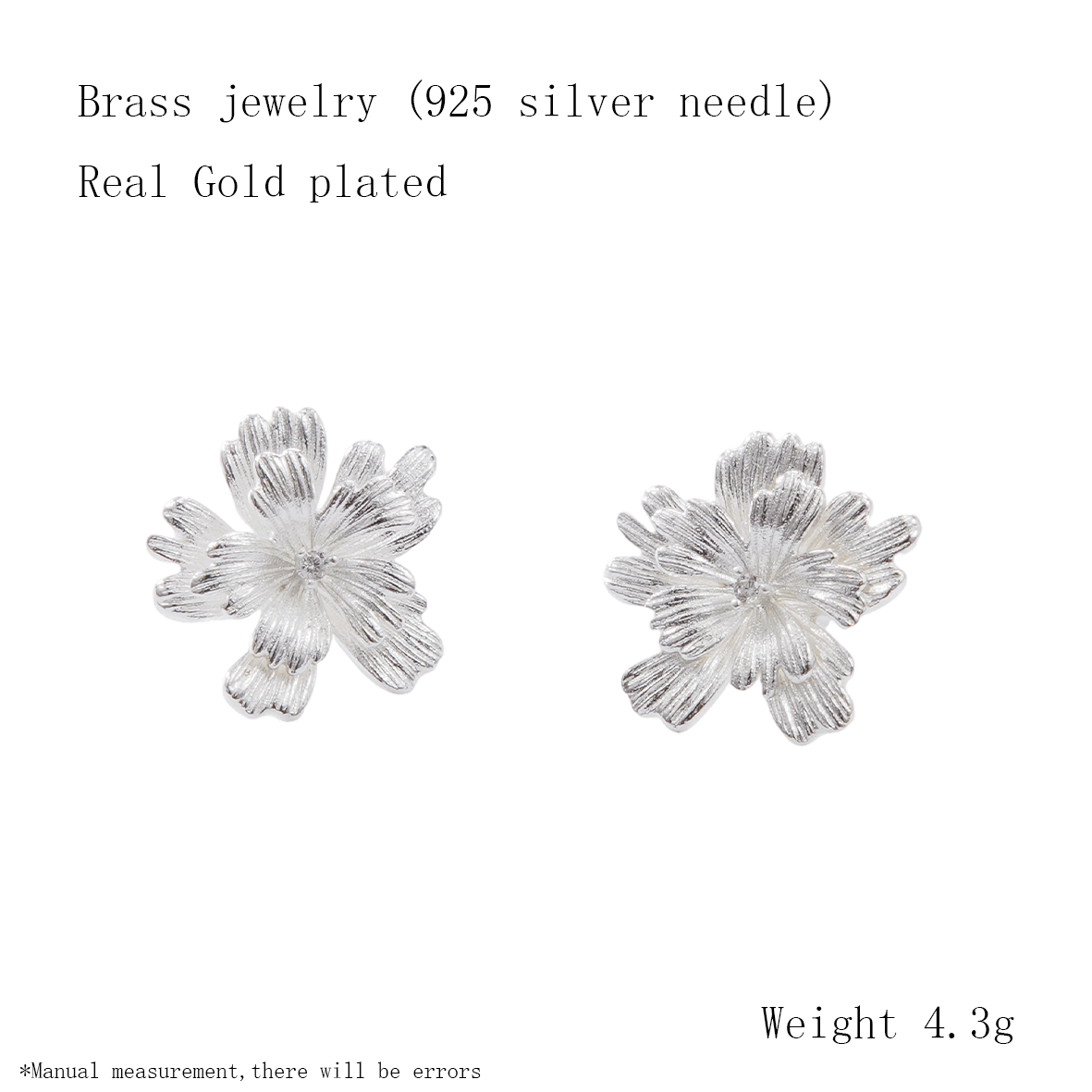 Floral Statement Earrings | 24K Gold-Plated Artisan Blossom Design | Hypoallergenic 925 Silver Posts (2.6cm)
