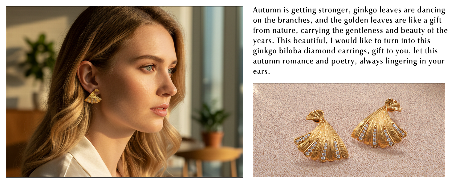 Capture the golden poetry of autumn with DOZM’s Ginkgo Biloba Diamond Earrings—a wearable tribute to nature’s elegance. Inspired by the graceful dance of ginkgo leaves in fall, these intricately designed huggie hoops feature delicate ginkgo leaf motifs accented with sparkling diamonds, all crafted in 24K gold-plated brass. Lightweight, hypoallergenic, and adjustable for a perfect fit, these earrings carry not just beauty, but a story of warmth and timeless connection.
