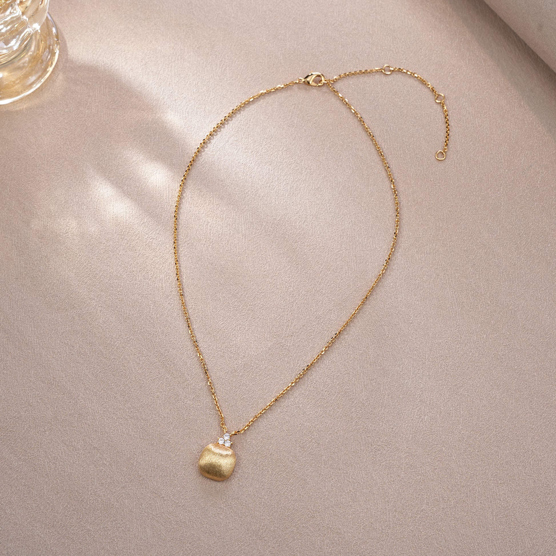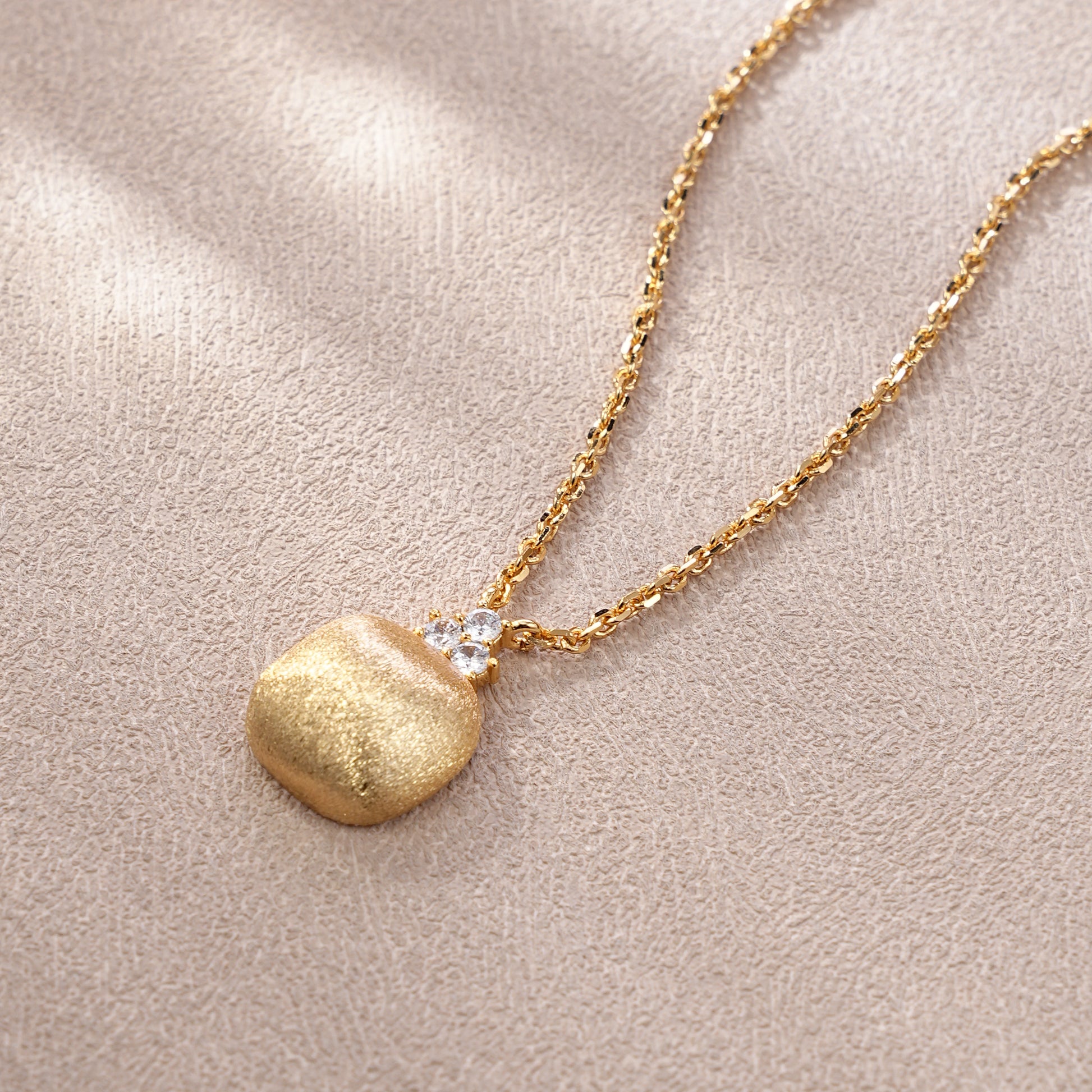 Minimalist Textured Bean Pendant Necklace - 18K Gold Plated & Silver Tone Dainty Chain Necklace for Women, Elegant Daily Wear Jewelry