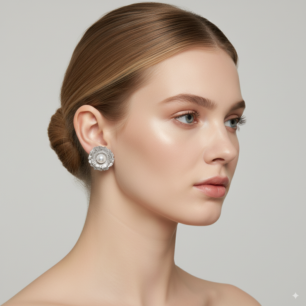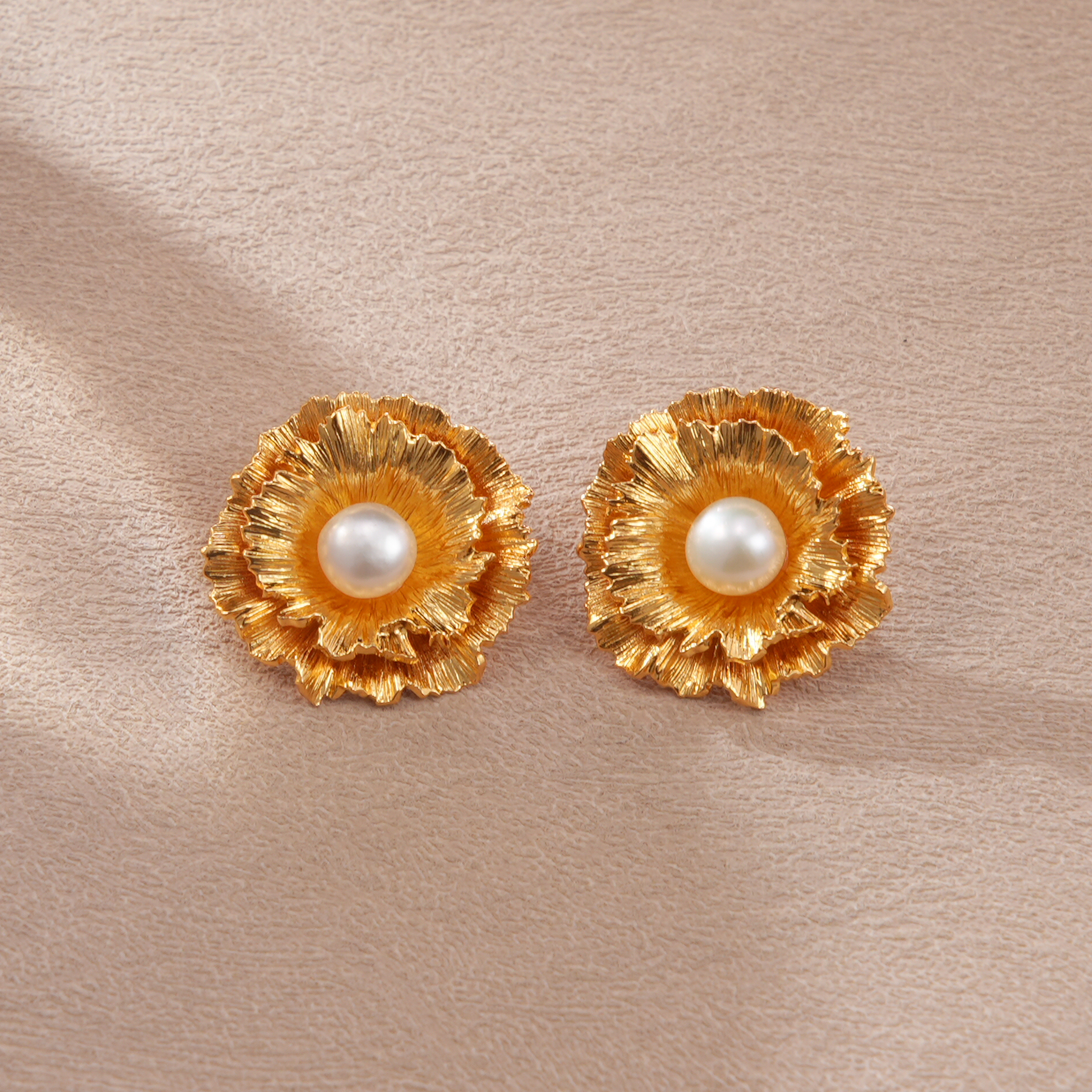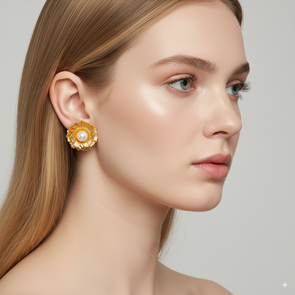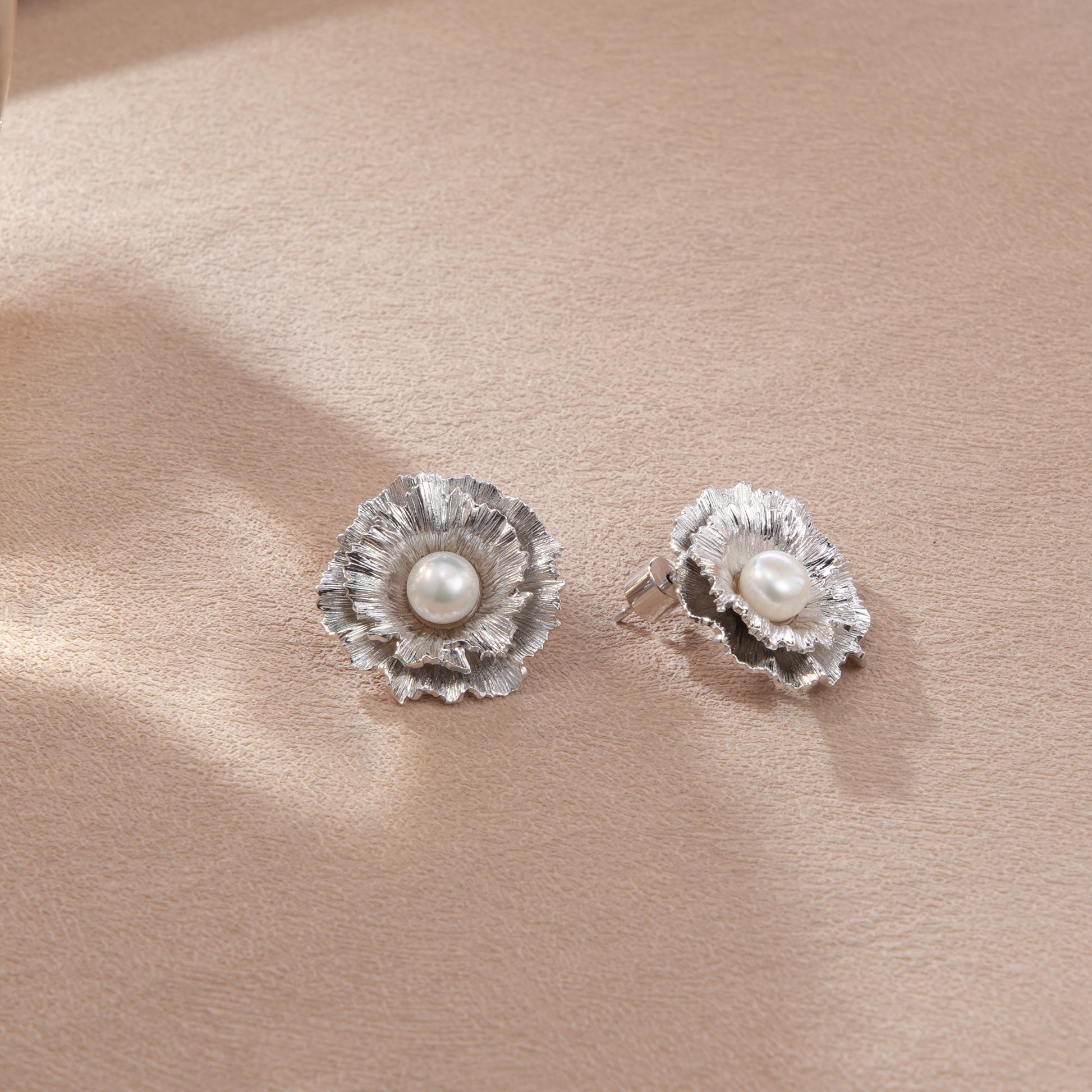 Let love bloom with every wear. DOZM’s Pearl Floral Earrings artfully combine lustrous pearls and delicate floral motifs, symbolizing deep affection and timeless beauty. Each earring features a 3D floating design with a 7mm pearl gently cradled within an open floral frame, measuring 24mm in total length. Weighing just 9.5g per earring, they offer a graceful presence that’s light enough for all-day elegance.