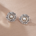 Pearl Floral Earrings | DOZM Jewelry – 3D Floating Pearl Blossom Design (24mm, 9.5g)